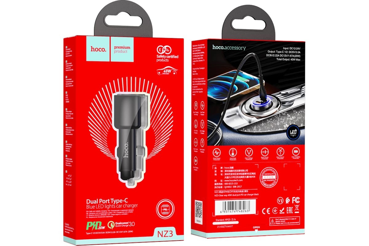 Car charger Hoco NZ3 2xType-C PD/QC 3.0 black