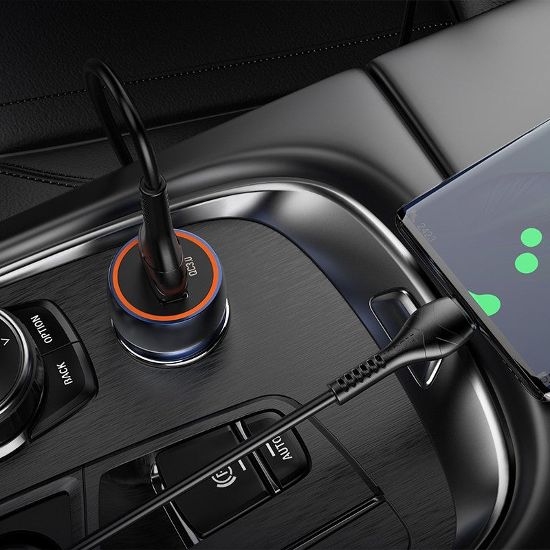 Automobilinis įkroviklis Hoco Z46 USB-A 18W QC3.0 + Type-C pilkas