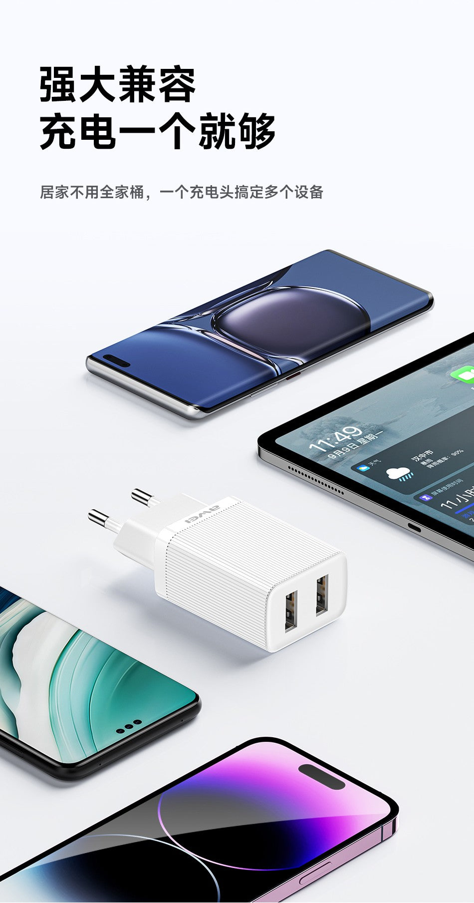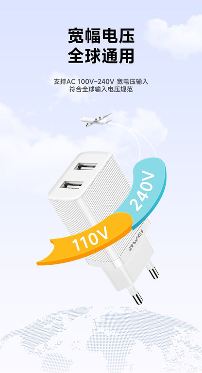 Įkroviklis Awei C15T-EU 10W 2xUSB-A + USB-A to USB-C cable 1.0m baltas