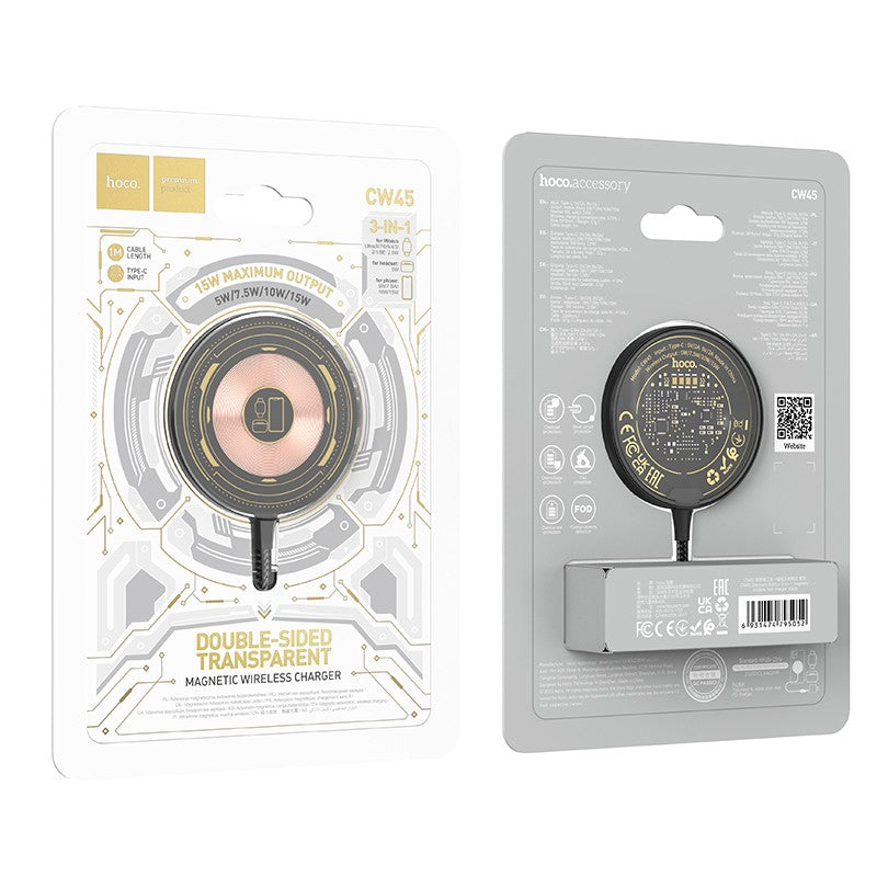 Įkroviklis belaidis Hoco CW45 3-in-1 juodas