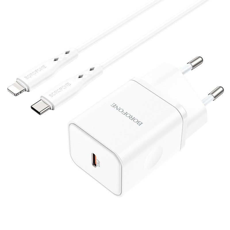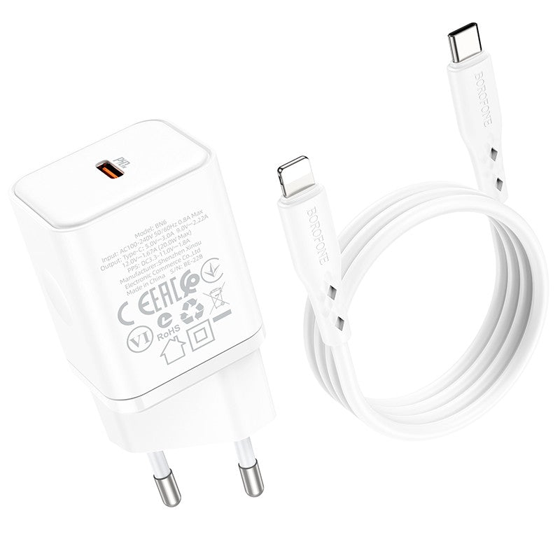 Įkroviklis Borofone BN6 Type-C PD+QC3.0 20W + Lightning, baltas