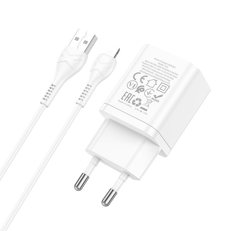 Įkroviklis Hoco N25 2xUSB-A (2.1A) + Lightning baltas