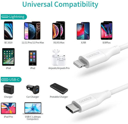 USB kabelis Choetech IP0040 MFi USB-C to Lightning PD30W 1.2m baltas